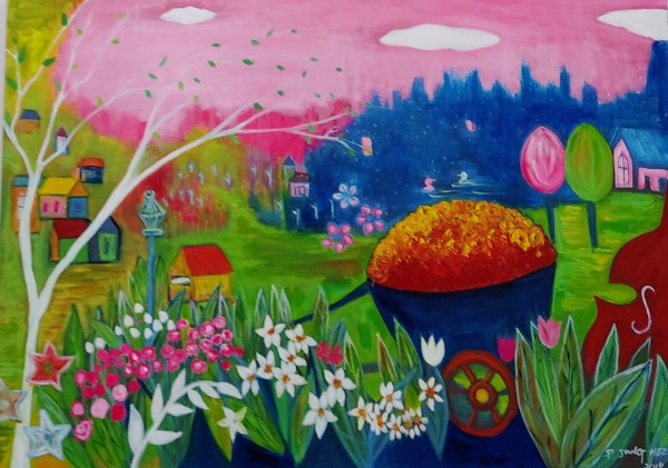 꽃과 자연을 사랑했던 유년시절의 기억과 경험을 되살려 형형색색의 나무, 튤립, 오리 아름다운 꽃동산을